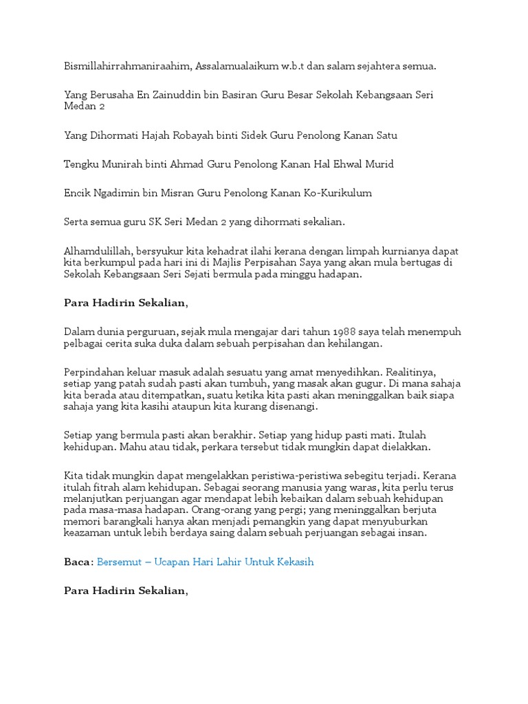 Doc Contoh Ucapan Wakil Murid Untuk Majlis Persaraan Sharina Sharina Academia Edu
